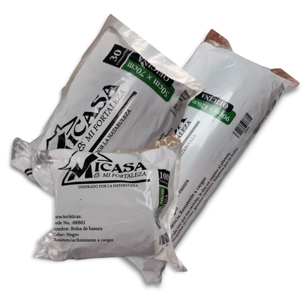 Las bolsas de basura MICASA están diseñadas para ofrecer máxima resistencia, practicidad y eficiencia en el manejo de residuos, adaptándose a diferentes necesidades tanto domésticas como comerciales. Fabricadas con materiales de alta calidad, garantizan un excelente desempeño incluso en condiciones exigentes, evitando roturas, filtraciones y malos olores.